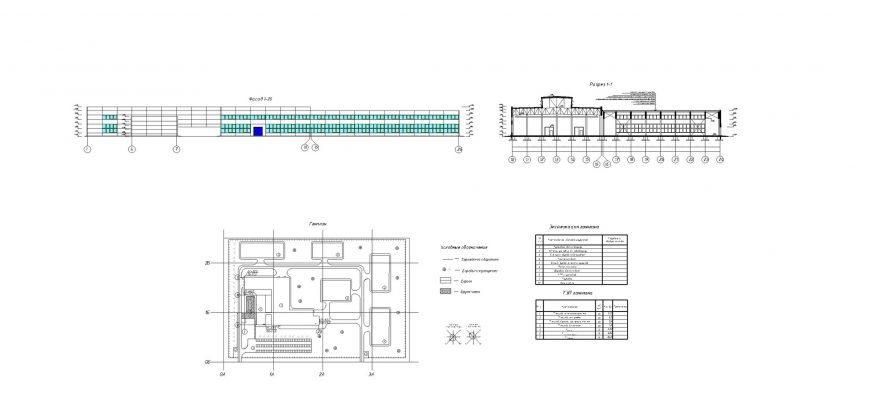 Чертежи промышленного здания разрез, фасад и генплан #промздание