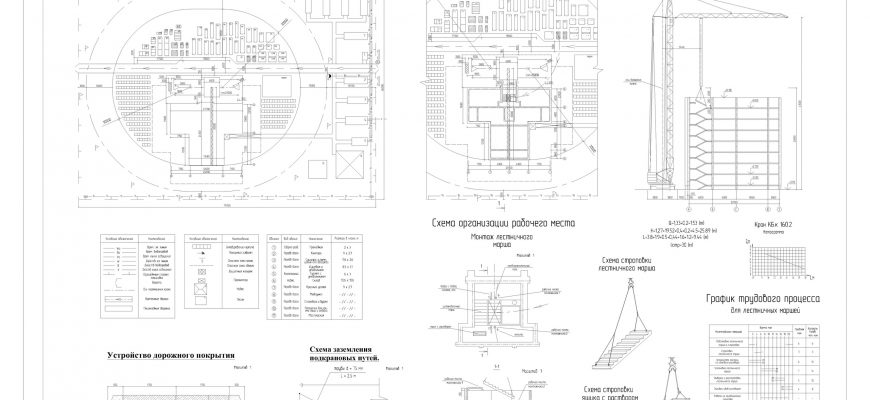 Чертежи стройгенплана и техкарты на монтаж лестничных маршей в Автокаде. В нашем ТГ, ссылка на него в комментариях