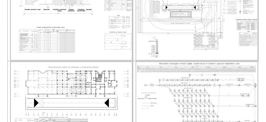 Чертежи техкарты на кровельные и каменные работы, сетевой график и стройгенплан в Автокаде