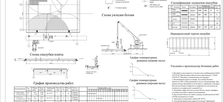 Чертежи технологической карты, на возведение фундаментной монолитной плиты